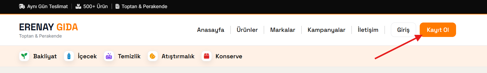 Aşağıdaki görselde de görebileceğiniz gibi, sitemizin en üst bölümünde yer alan “Kayıt Ol” butonuna tıklayarak üyelik işleminizi birkaç adımda hızlıca başlatabilirsiniz.